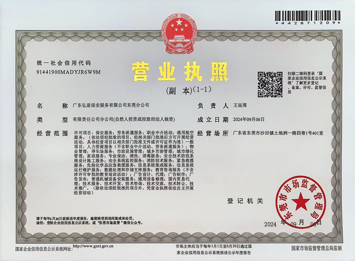 • 弘盾保安總公司營業(yè)執(zhí)照