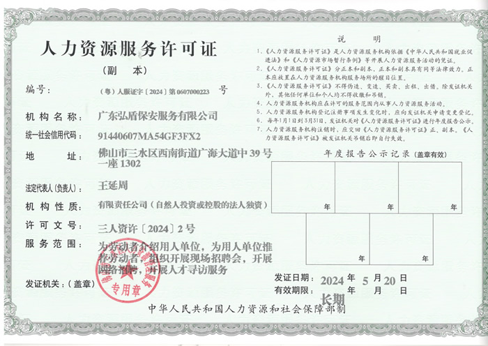 • 人力資源服務(wù)許可證