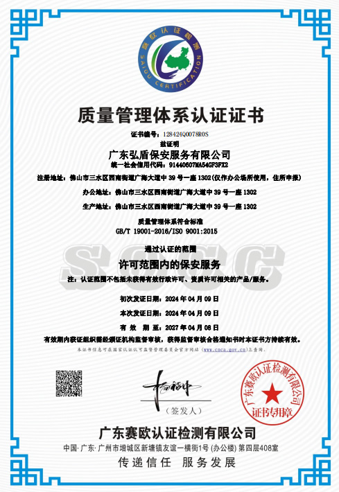 廣東弘盾保安服務(wù)有限公司東莞分公司是經(jīng)東莞市公安局嚴(yán)格審核,廣東省公安廳批準(zhǔn)頒發(fā)《保安服務(wù)許可證》,在東莞市工商行政管理機(jī)關(guān)登記注冊的,依法開展門衛(wèi)、巡邏守護(hù)、秩序維護(hù)、隨身護(hù)衛(wèi),安全檢查等綜合安保服務(wù)的專業(yè)保安服務(wù)公司... [詳細(xì)介紹]