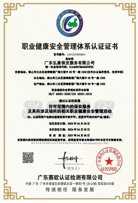 • 職業(yè)健康安全管理體系認(rèn)證證書